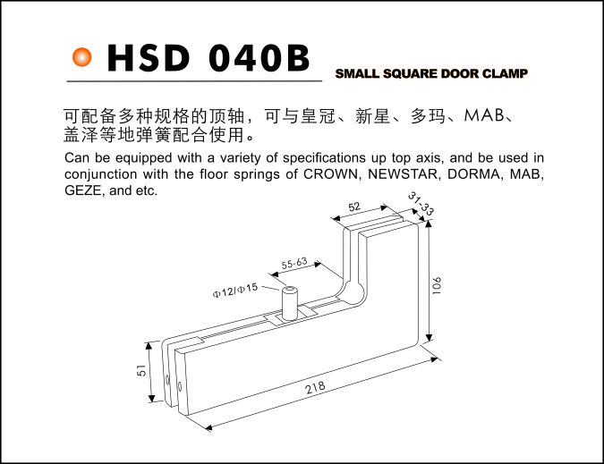 Specification:   SS304 cover plate, 0.8mm thick aluminum alloy body, 8mm thick for 10-12m glass thickness